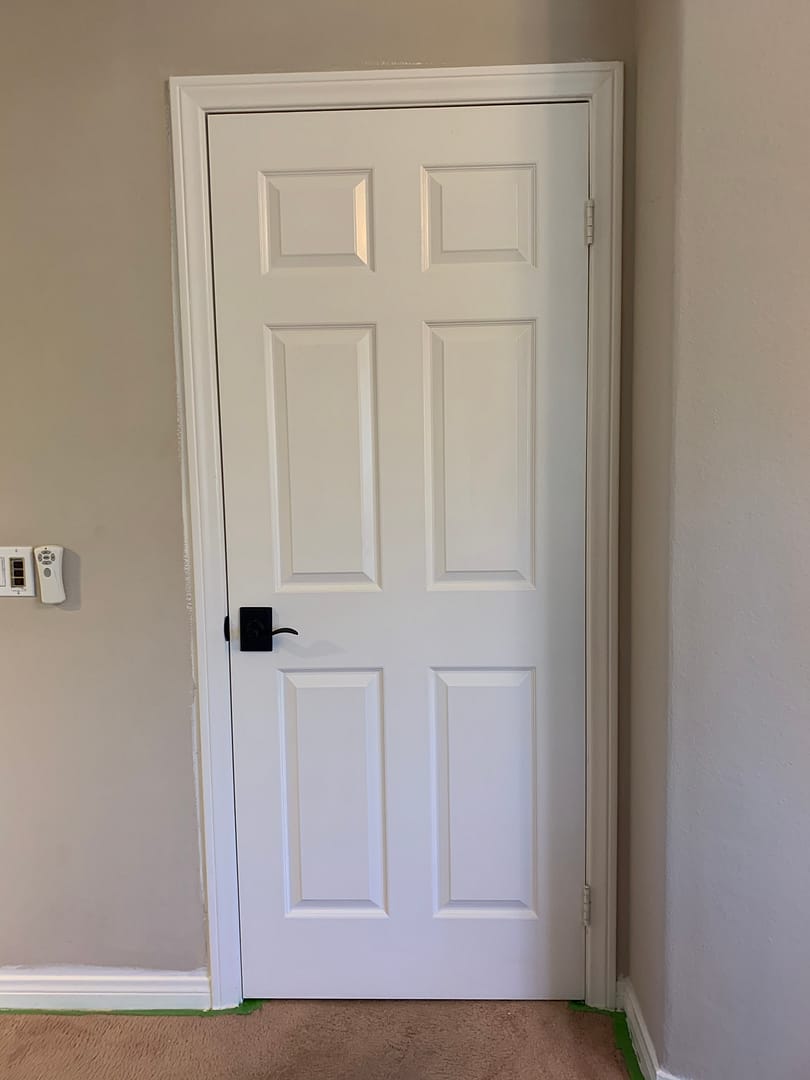 And here’s the freshened up version. My favorite shade of white, nice semi-gloss and a matte black door lever.