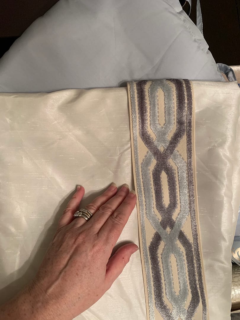 My upholsterer had a really beautiful pearl colored velvet that I used for the bed but just found out she might not be able to have it done by the conclusion of these six weeks. Thankfully Linda has given us all a Covid-inspired extension through the Thanksgiving weekend. We may need it!